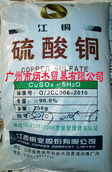 分子式:CuSO₄·5H₂O;分子量:249.68。Cas号:7758-98-7;溶解性:溶于水,溶于稀乙醇,不溶于无水乙醇、液氨。