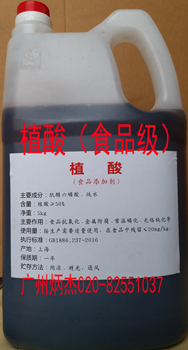 植酸,别称:肌酸、肌醇六磷酸、环己六醇磷酸酯,是以玉米,米糠为原料,采用国际先进技术“树脂吸附法”经提纯、浓缩而成。主要成分:肌醇六磷酸、纯水。分子式:C6H18O24P6,分子量:660.04。淡黄色至淡褐色浆状液体。易溶于水、乙醇和丙酮,几乎不溶于乙醚、苯和氯仿。Cas:83-86-3。执行标准:GB1886.237-2016。